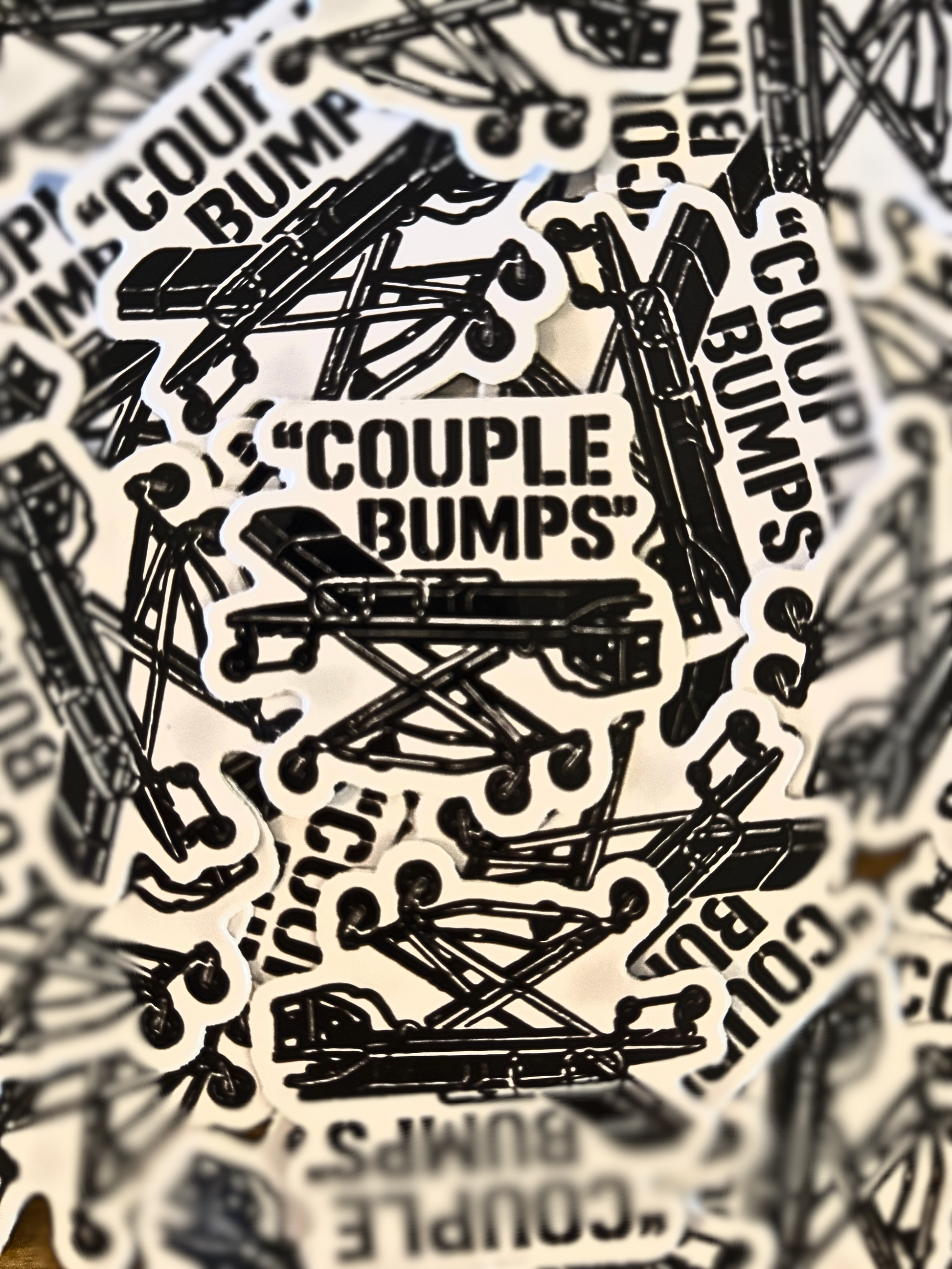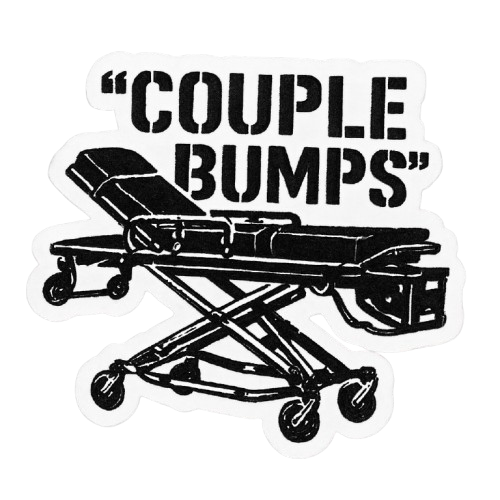 “Couple bumps” is the classic pre-jolt disclaimer—equal parts warning and inside joke. If you’ve said it mid-rollout, this sticker’s already yours.